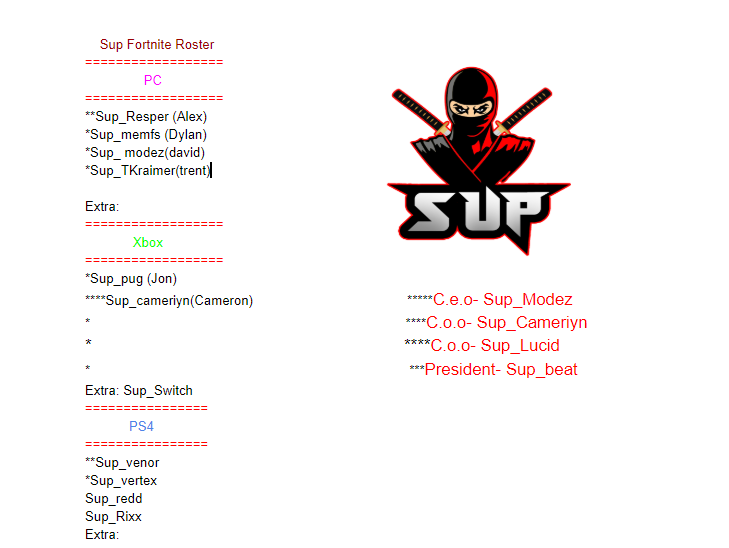 E-sports is a multiplayer video game played competitively for spectators, typically by professional gamers. sup is a team that is taking the gaming industry by storm, hitting the coolest snipes, trickshots, quad feeds, and so much more!OUR PLANS
